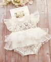 Beautiful Crystal White Romper, made with dainty lace and stretch soft fabric.