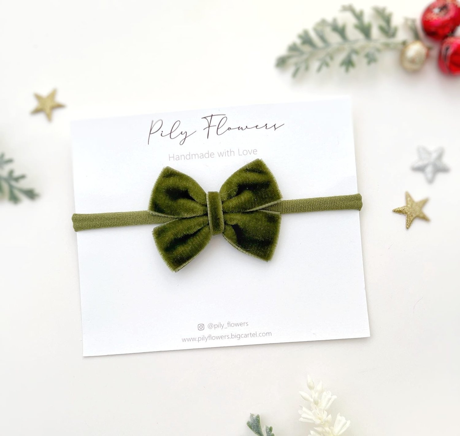 Soft velvet bow attached to a gentle, stretchy nylon band. Perfect for you baby`s christmas photoshoot.