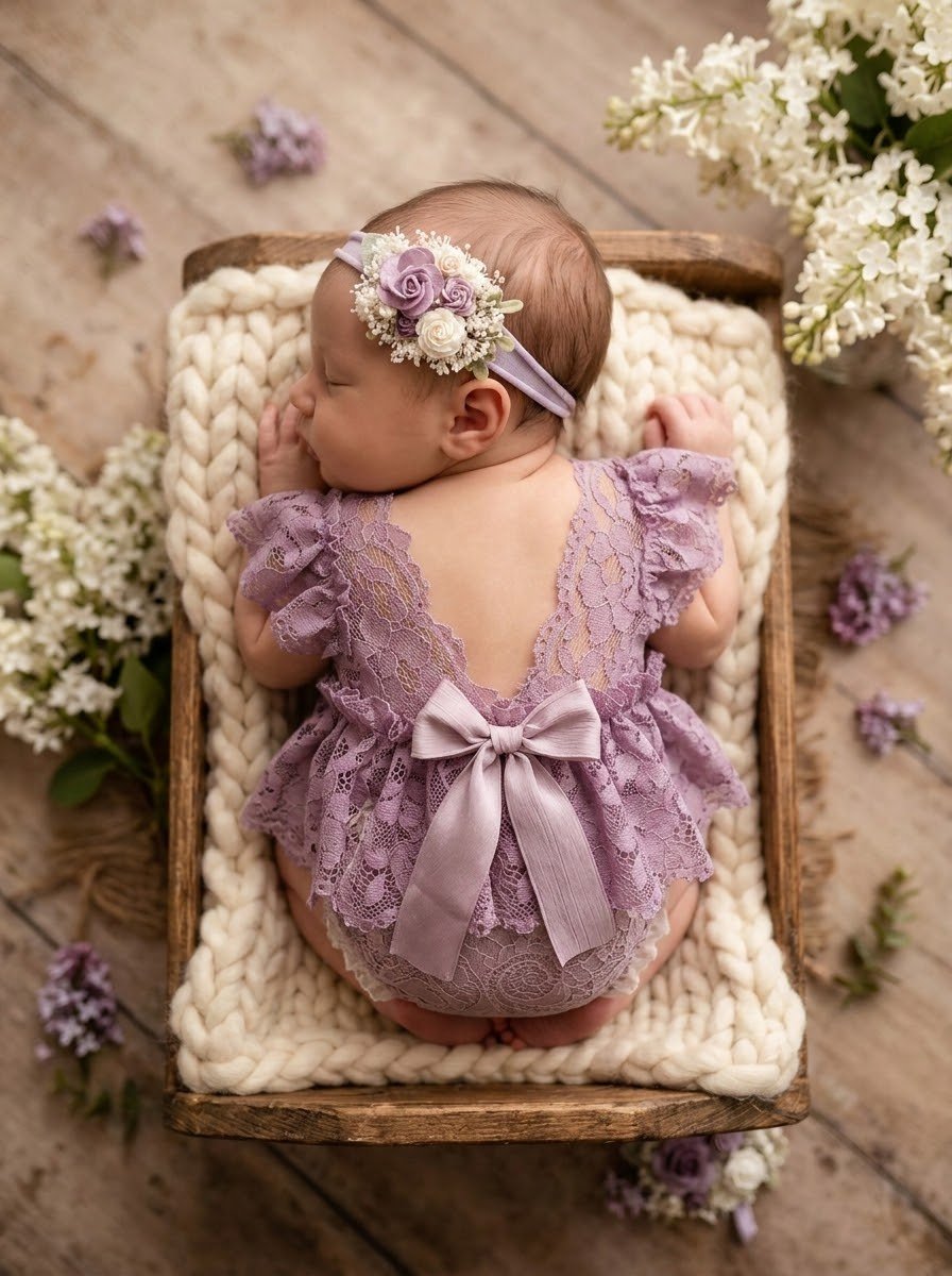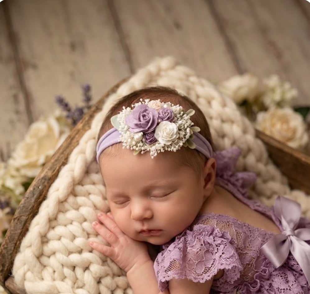 Measures: 6 cm wide (approximately 2.36 inches wide) Attached to a lilac nylon headband.