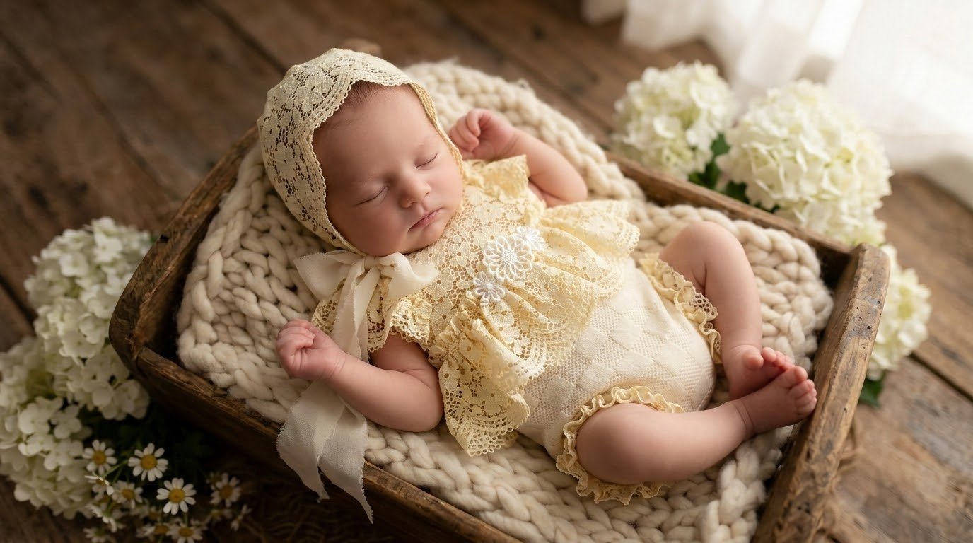 The Margaret Romper is a lovely piece made with very soft stretch lace for a perfect and comfortable fit. Its delicate yellow color makes it the best choice for your baby’s first photography session or any sweet celebration.
