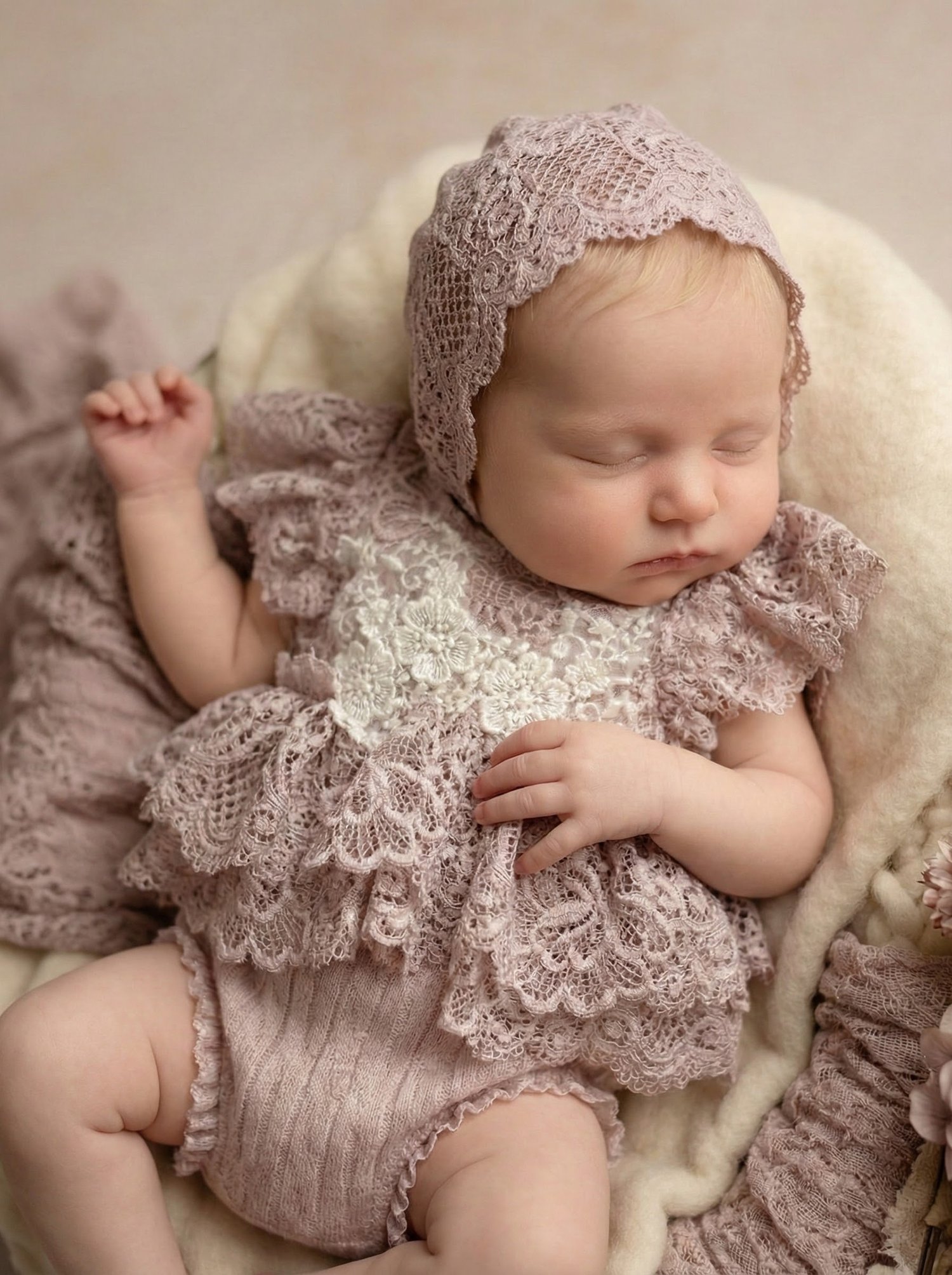 The Melody | Dusty Rose Floral Lace Photography Romper
